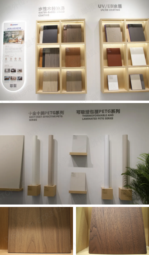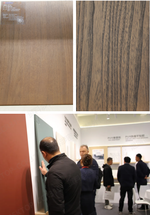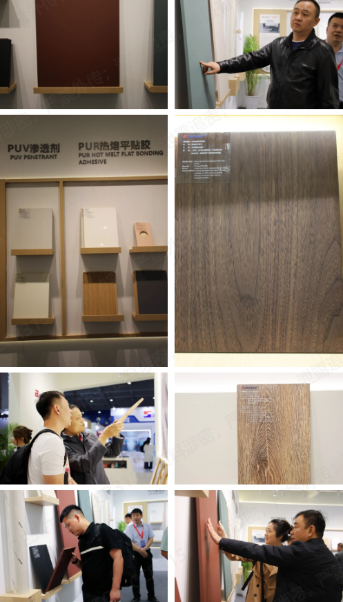 從產(chǎn)品來(lái)說(shuō),PUR熱熔膠、雙組份聚氨酯膠、水性聚氨酯膠等膠(jiāo)粘劑突破環保技術瓶頸,無醛淨味,性能優越(yuè),為板材粘接提供綠色健康解決方案(àn);水性、UV實色混油塗層產品,不僅能實現豐富的色彩,更重要的是無溶劑添加,環保淨味;PETG功能膜材料,相比(bǐ)PVC膜(mó),不僅無味(wèi),還可運用於吸塑包覆工藝,實現精美(měi)立體造型。