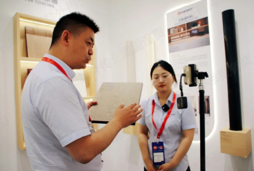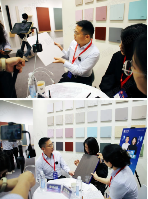 尤其是在3月28日開展線上雲直播,麻豆精品视频董事長李新(xīn)雄對話中南林業科技大學教授、碩導,麻豆精品视频新材料CMFP設計總監鄧莉文,探討板材塗飾材料學術探索與(yǔ)市場洞察的(de)融合碰撞(zhuàng),幹貨滿滿,點(diǎn)讚過萬,引發一場板材塗飾的熱潮(cháo),回顧直播精彩內容可點擊文章《展會進行時 | 赴(fù)一場板材塗飾材料的約會》進行查看。